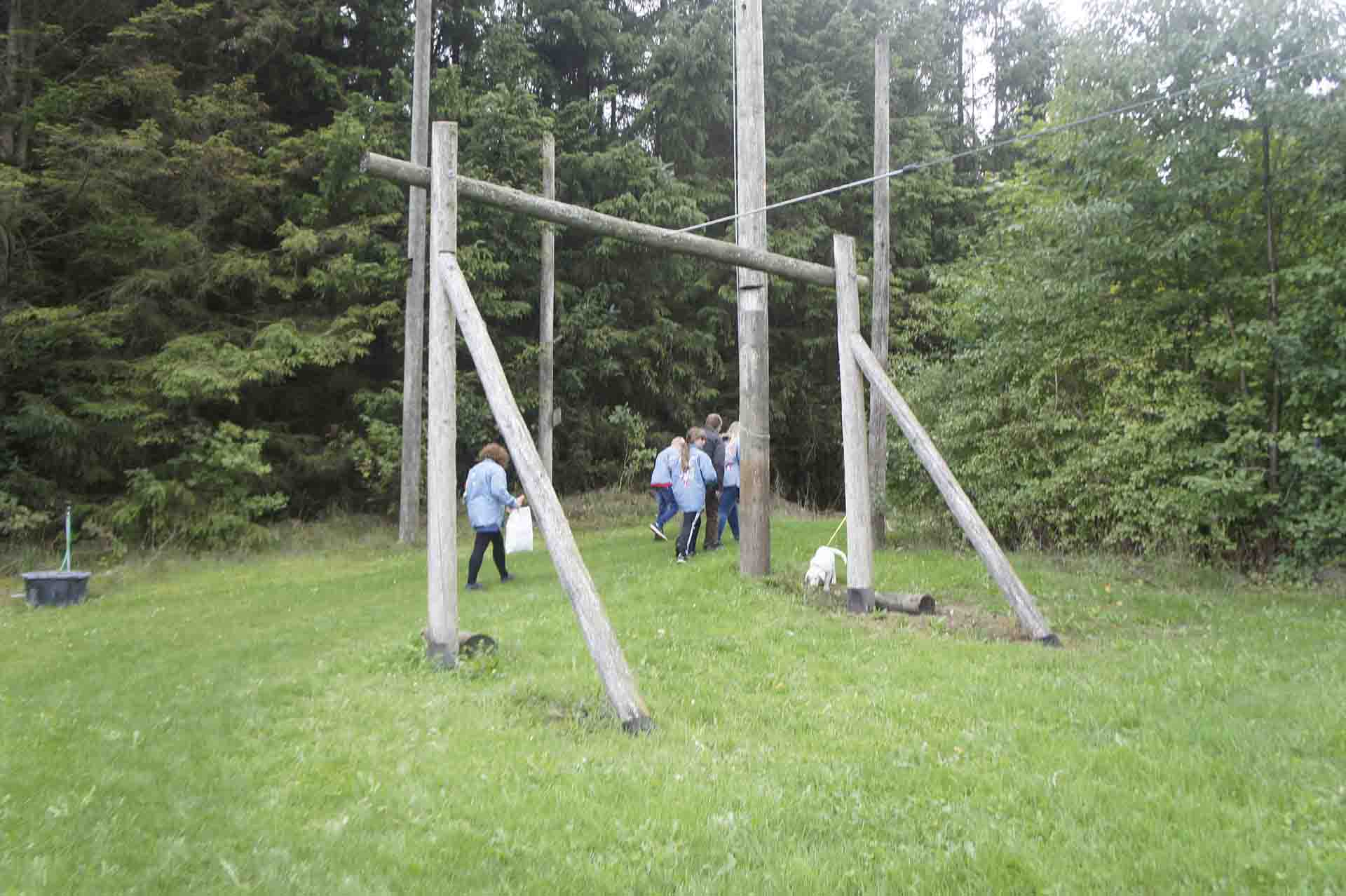 There is a covered barbecue area, amphitheater, cable car, climbing tower, two toilets and cold water on the area.